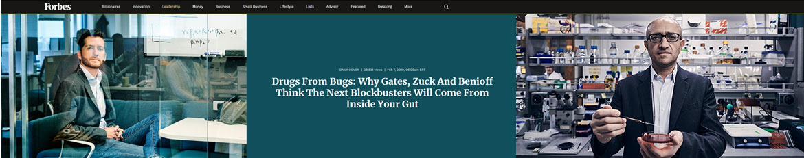 Forbes报道"Drugs from Bugs∶Why Gates,ZuckAnd Benioff Think The Next Blockbusters WillCome From Inside Your Gut"